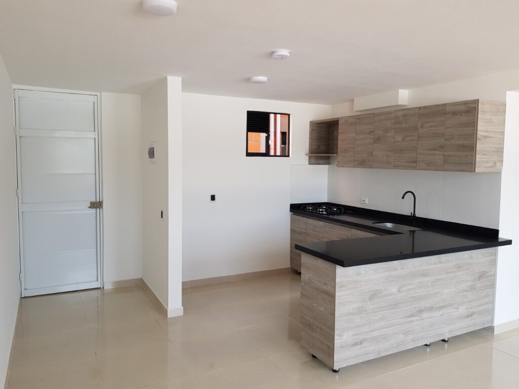 Cuenta con: Cocina amplia con excelentes acabados, 2 habitaciones, sala/comedor/estudio, 2 baños, zona de lavado independiente, balcón generoso. Piso 4 con ascensor en conjunto cerrado. Contiguo al Centro Comercial Nuestro Cartago. Parqueaderos comunes